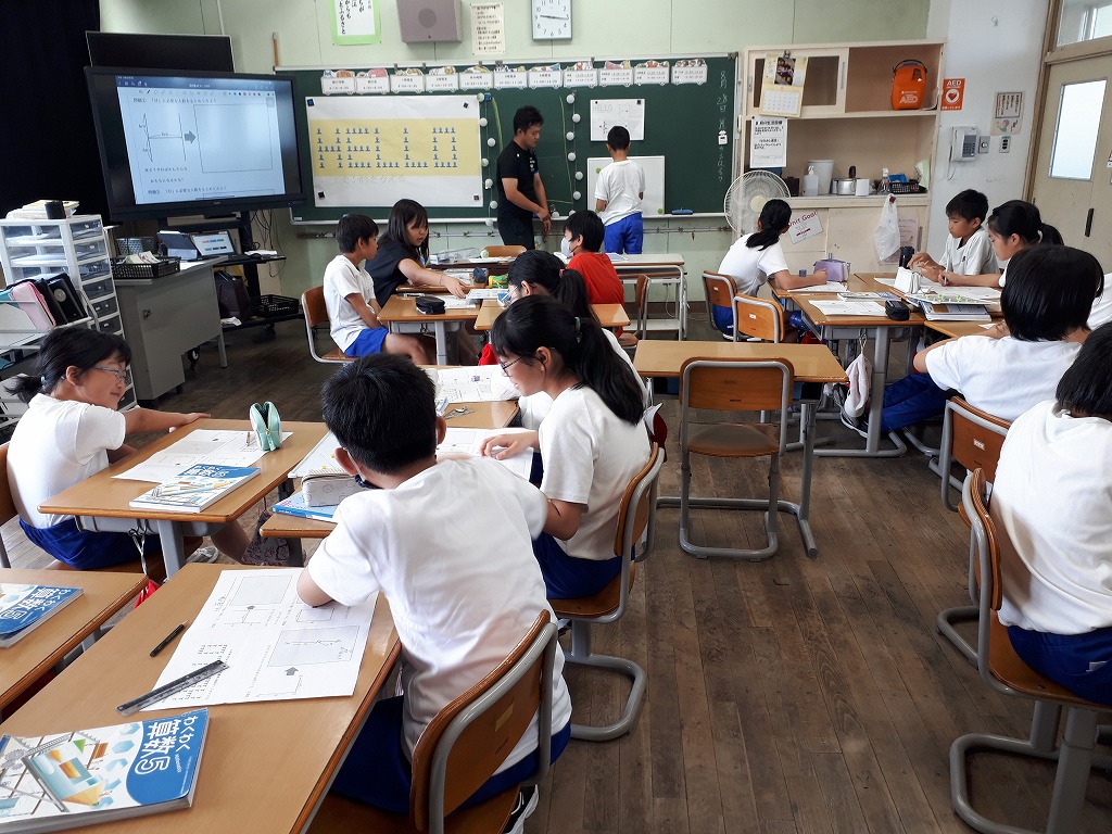 龍江小学校では今年度の教科研究の試みの一つとして担任交換授業を進めてきています。8月28日には2学期1回目の授業がありました。5年生の算数の授業を1年生の担任が受け持ちました。多くの児童が発言しやすいように教材が工夫されており、普段とはひと味違った授業になっていました。