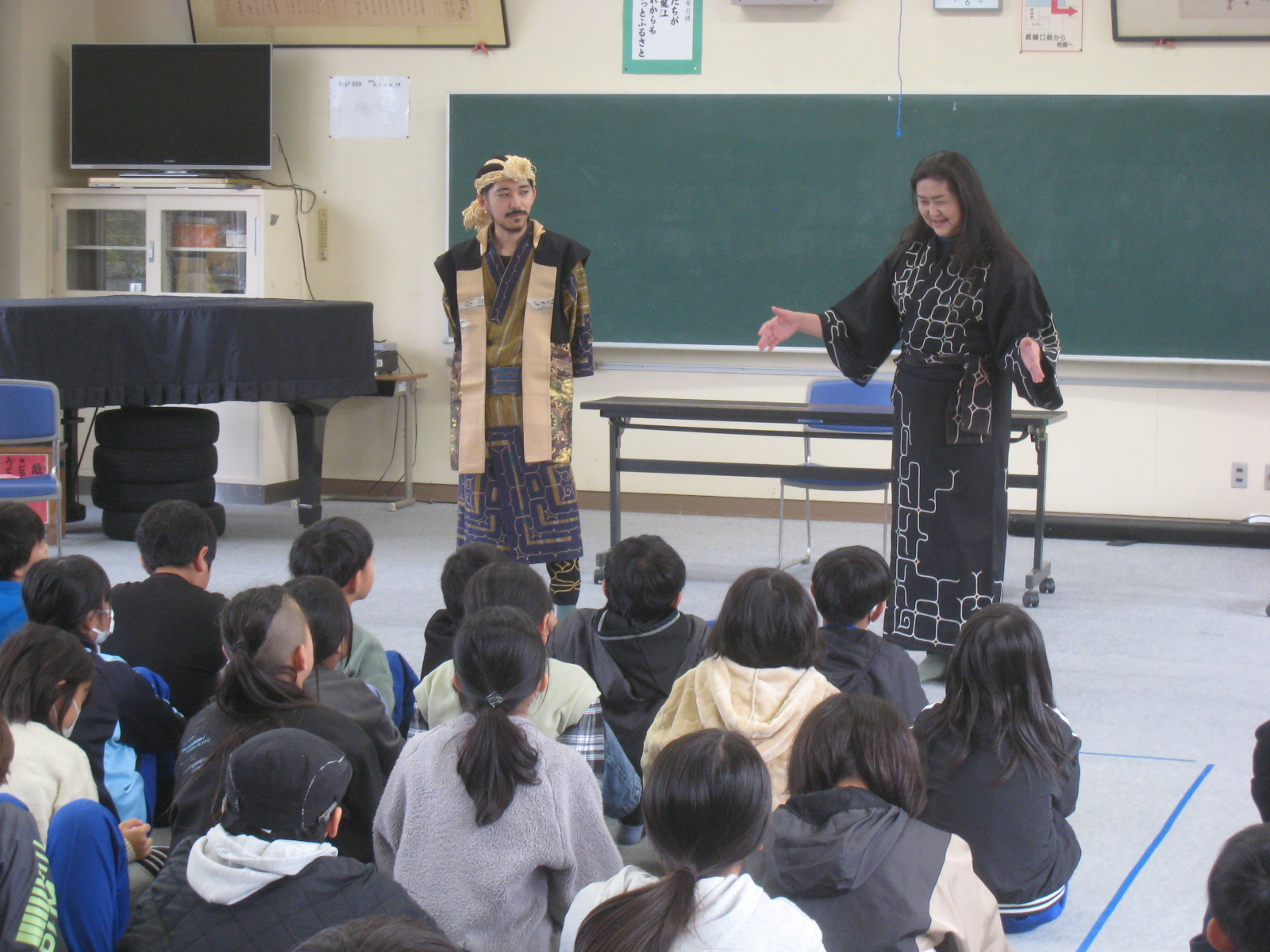 旭川市の川村カ子トアイヌ記念館より館長さんらをお招きして、4~6年生が、飯田線の測量と開通工事に大きな功績を残した川村カ子トとアイヌの文化について学習しました。カ子トがアイヌということで数々の不当な差別を受けながらも、力強く生き自分の使命を果たすために力を尽くしたことや、アイヌの歌や踊り(舞)、アイヌ文化で大切にされている考え方などについて教わりました。とても貴重な機会となるとともに、飯田線やカ子トへの思いを一層膨らませることができました。