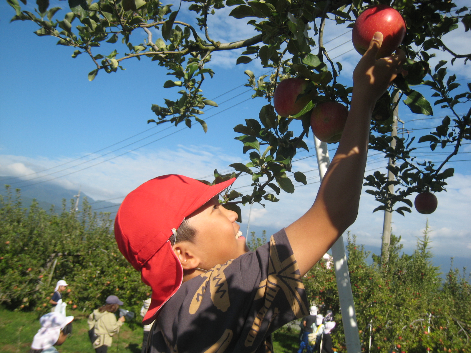 後援会の皆さんに大切に管理していただき、今年もりんごの収穫期を迎えることができました。4、5、6年生が代表として、シナノスイート、秋映、紅玉の収穫を行いました。今年は大変豊作で、時間いっぱい収穫しましたが、子どもたちが一つ一つのりんごを大切に扱う姿が印象的でした。